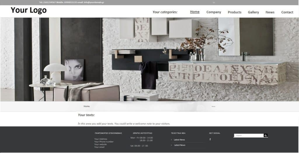 - Εισαγωγή λογοτύπου και των εταιρικών σας χαρακτηριστικών στην ιστοσελίδα και τον Footer.
